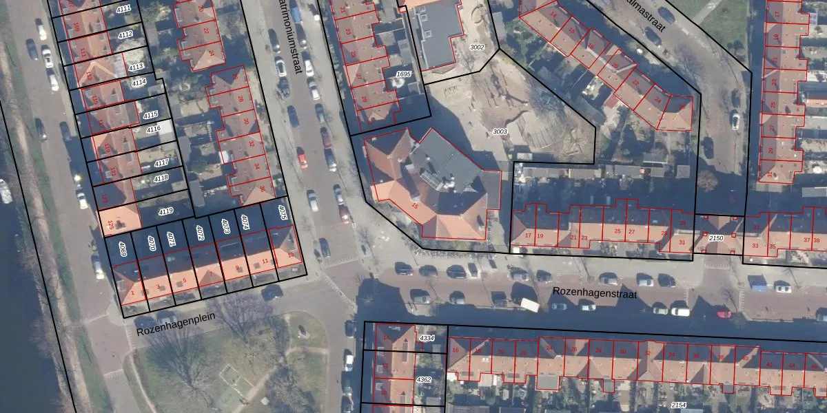 Het perceel waarop Rozenhagenstraat 15 staat heeft een oppervlakte van 1650 m². Dit is een zeer groot perceel. De perceeloppervlakte wordt geregistreerd door het Kadaster. Gedetailleerde informatie over de maten van dit perceel kunt u vinden in het rapport Kadastrale kaart met maatvoering van Rozenhagenstraat 15.