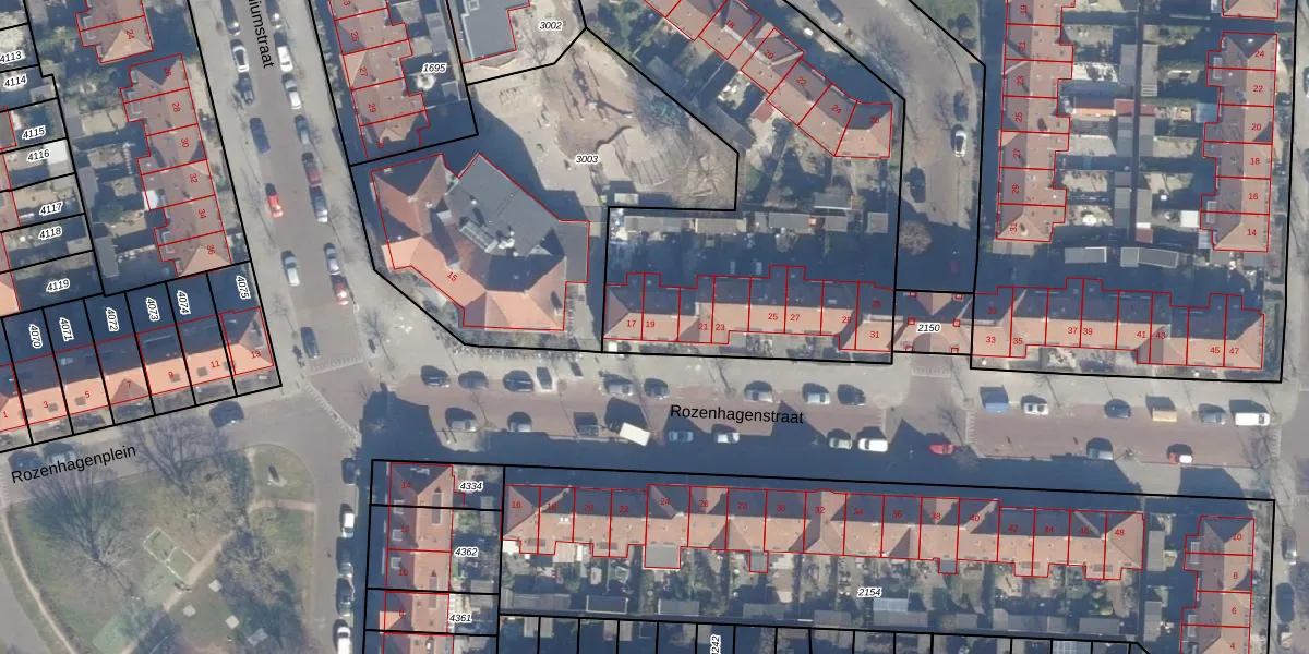 Het perceel waarop Rozenhagenstraat 19 staat heeft een oppervlakte van 4890 m². Dit is een zeer groot perceel. De perceeloppervlakte wordt geregistreerd door het Kadaster. Gedetailleerde informatie over de maten van dit perceel kunt u vinden in het rapport Kadastrale kaart met maatvoering van Rozenhagenstraat 19.