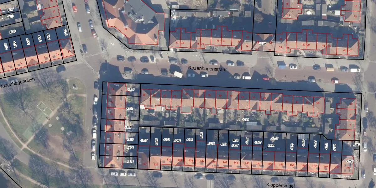 Het perceel waarop Rozenhagenstraat 24 staat heeft een oppervlakte van 2695 m². Dit is een zeer groot perceel. De perceeloppervlakte wordt geregistreerd door het Kadaster. Gedetailleerde informatie over de maten van dit perceel kunt u vinden in het rapport Kadastrale kaart met maatvoering van Rozenhagenstraat 24.