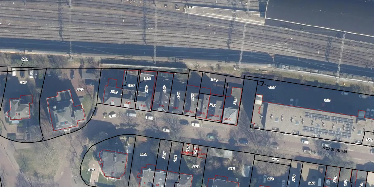 Het perceel waarop Rozenstraat 11-H staat heeft een oppervlakte van 171 m². Dit is een middelgroot perceel. De perceeloppervlakte wordt geregistreerd door het Kadaster. Gedetailleerde informatie over de maten van dit perceel kunt u vinden in het rapport Kadastrale kaart met maatvoering van Rozenstraat 11-H.