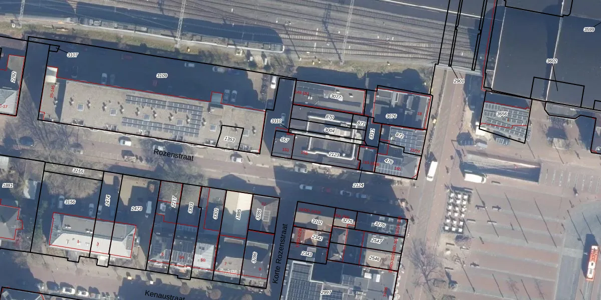 Het perceel waarop Rozenstraat 155 staat heeft een oppervlakte van 188 m². Dit is een middelgroot perceel. De perceeloppervlakte wordt geregistreerd door het Kadaster. Gedetailleerde informatie over de maten van dit perceel kunt u vinden in het rapport Kadastrale kaart met maatvoering van Rozenstraat 155.