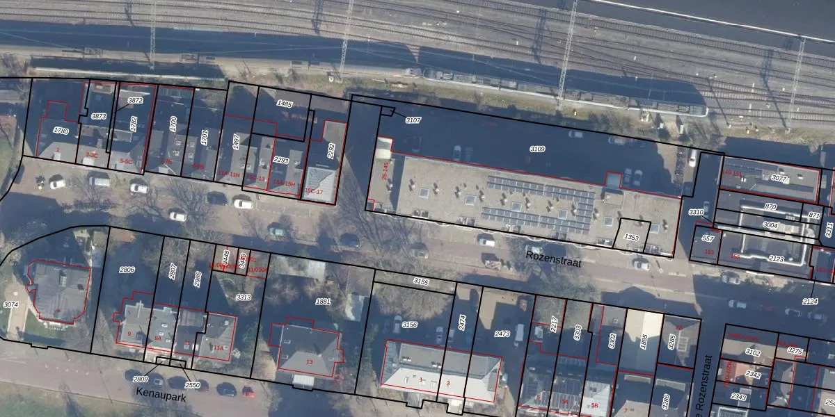 Het perceel waarop Rozenstraat 29 staat heeft een oppervlakte van 2021 m². Dit is een zeer groot perceel. De perceeloppervlakte wordt geregistreerd door het Kadaster. Gedetailleerde informatie over de maten van dit perceel kunt u vinden in het rapport Kadastrale kaart met maatvoering van Rozenstraat 29.