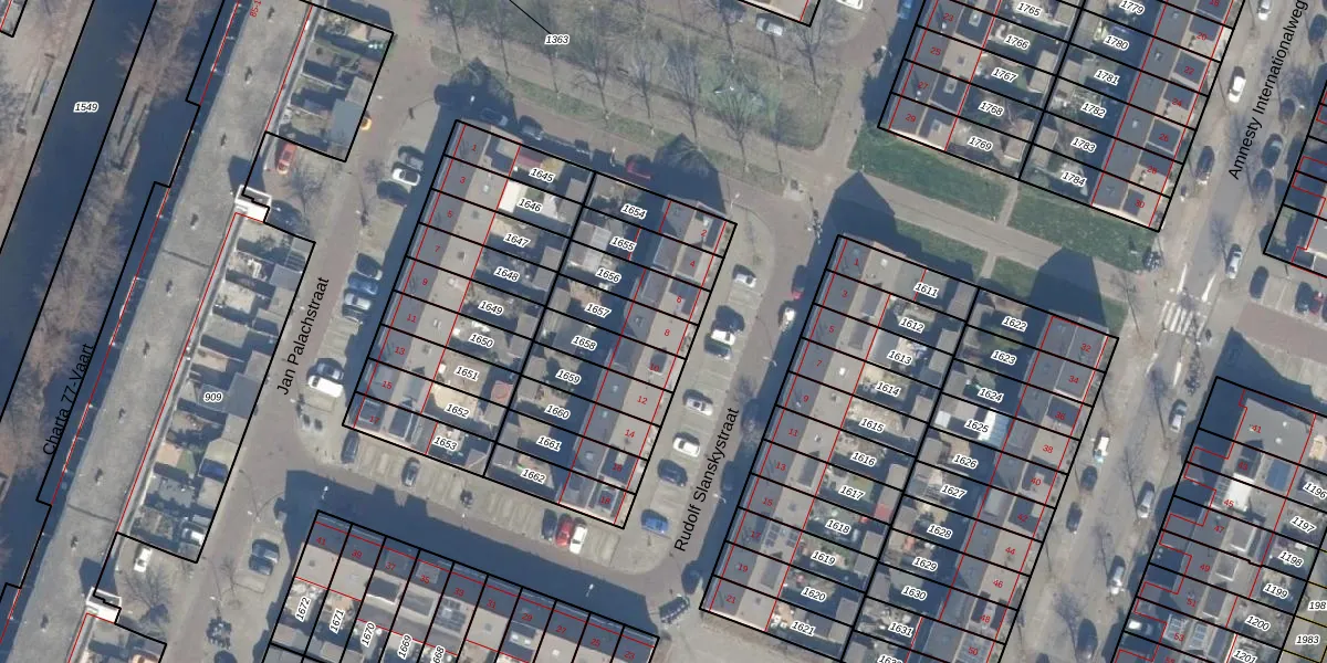 Rudolf Slanskystraat 8 is gelegen op kadastraal perceel HLM02V1657. Deze kadastrale aanduiding is uniek en wordt gebruikt door het Kadaster om eigendomsrechten en andere zakelijke rechten vast te leggen. Het perceel maakt onderdeel uit van de kadastrale gemeente Haarlem.