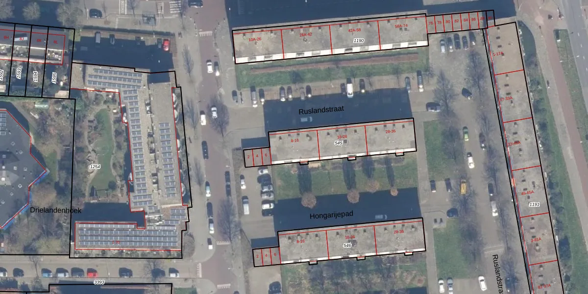 Het perceel waarop Ruslandstraat 12 staat heeft een oppervlakte van 616 m². Dit is een groot perceel. De perceeloppervlakte wordt geregistreerd door het Kadaster. Gedetailleerde informatie over de maten van dit perceel kunt u vinden in het rapport Kadastrale kaart met maatvoering van Ruslandstraat 12.