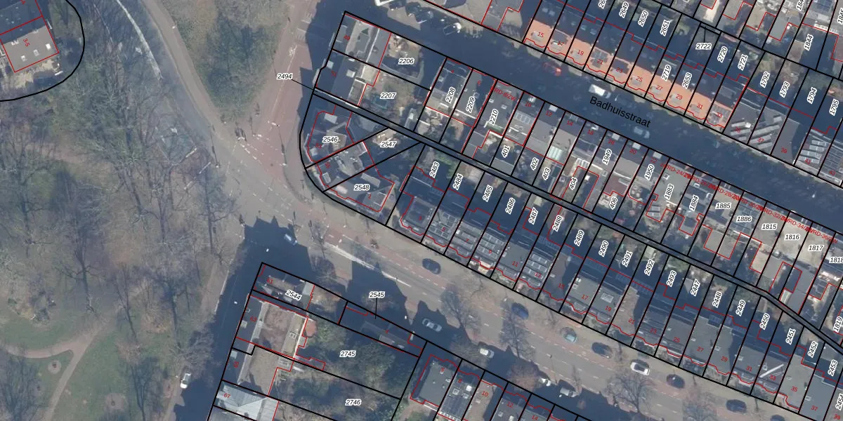 Gebruik de zoekbalk of klik op een perceel voor informatie over de adressen binnen dit perceel.