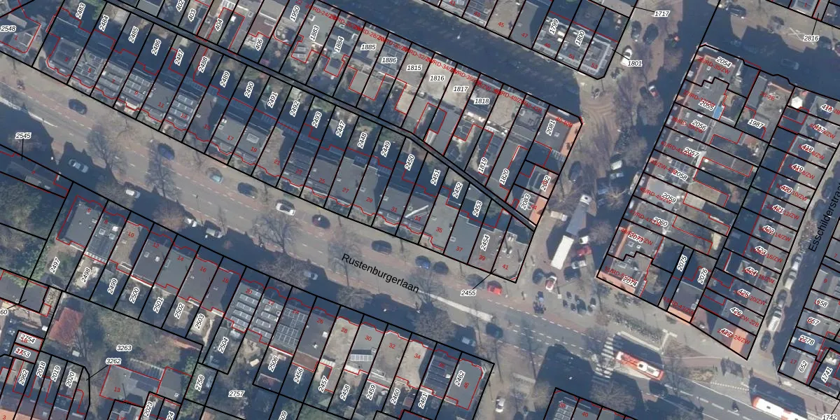 Het perceel waarop Rustenburgerlaan 33 staat heeft een oppervlakte van 125 m². Dit is een middelgroot perceel. De perceeloppervlakte wordt geregistreerd door het Kadaster. Gedetailleerde informatie over de maten van dit perceel kunt u vinden in het rapport Kadastrale kaart met maatvoering van Rustenburgerlaan 33.