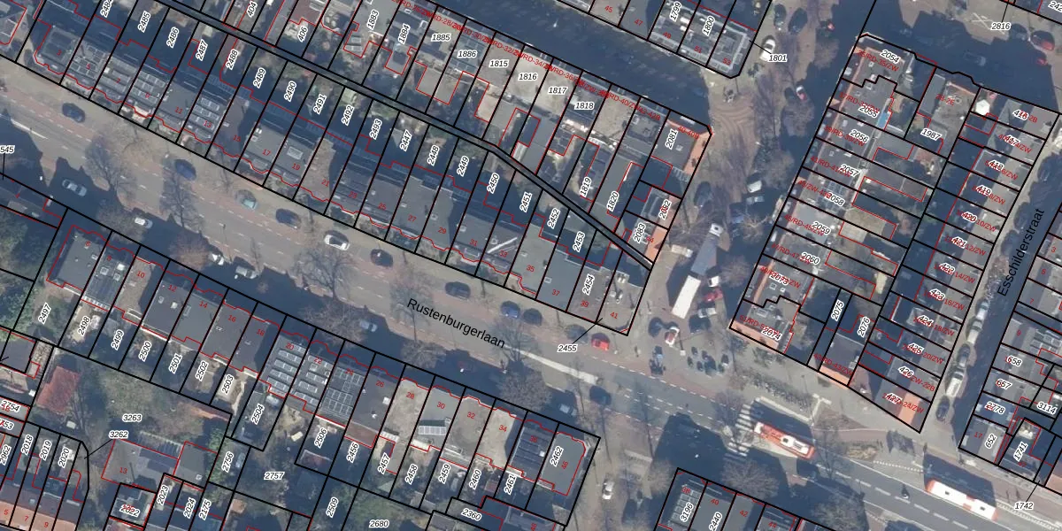 Rustenburgerlaan 35 is gelegen op kadastraal perceel HLM01K2452. Deze kadastrale aanduiding is uniek en wordt gebruikt door het Kadaster om eigendomsrechten en andere zakelijke rechten vast te leggen. Het perceel maakt onderdeel uit van de kadastrale gemeente Haarlem.