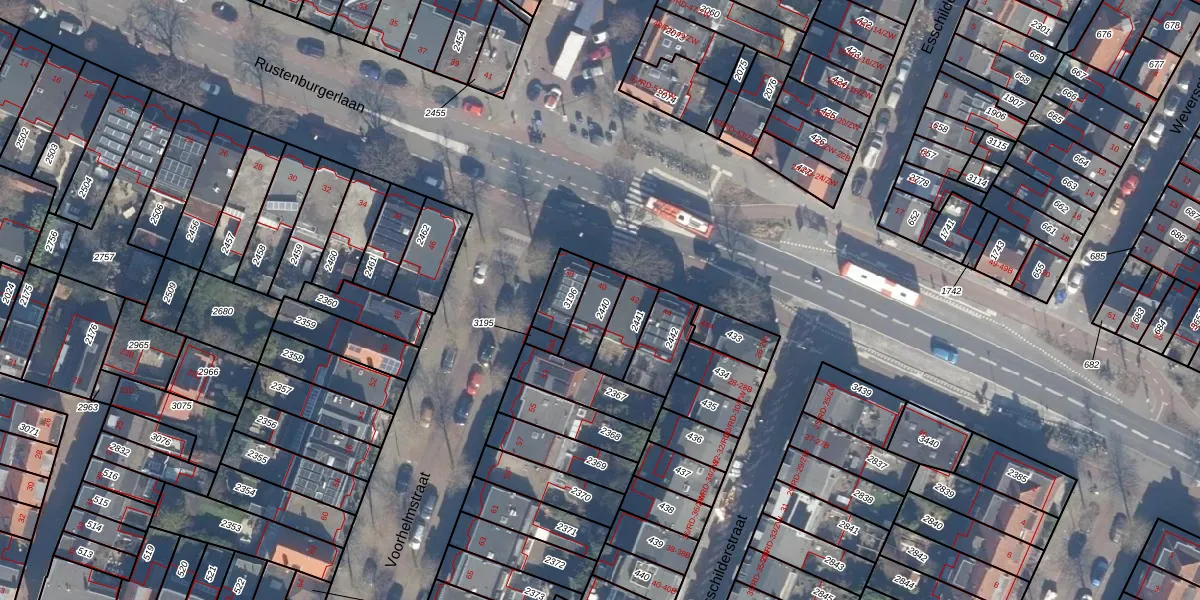 Het perceel waarop Rustenburgerlaan 40 staat heeft een oppervlakte van 99 m². Dit is een klein perceel. De perceeloppervlakte wordt geregistreerd door het Kadaster. Gedetailleerde informatie over de maten van dit perceel kunt u vinden in het rapport Kadastrale kaart met maatvoering van Rustenburgerlaan 40.