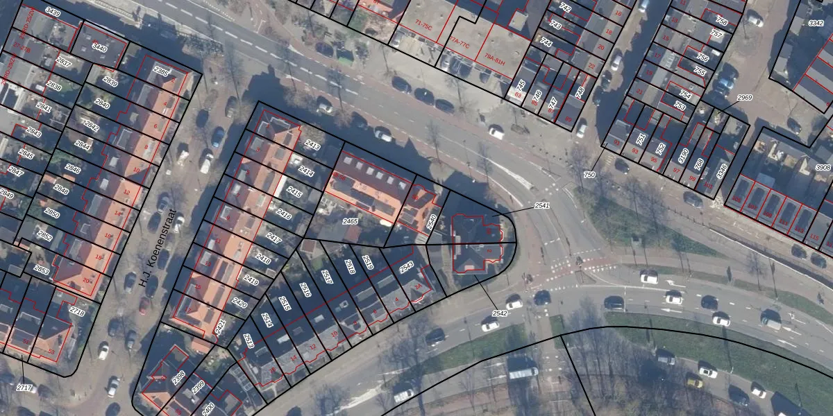 Het adres is gelegen op perceel 2540 in de sectie K en de kadastrale gemeente Haarlem. De kadastrale aanduiding is aldus HLM01-K-2540. Het perceel is kleiner dan gemiddeld in Haarlem. Het perceel is 148 m² groot, terwijl het gemiddelde ligt op 328,17 m². Het kleinste perceel in de kadastrale gemeente is 0 m² groot. De grootste perceeloppervlakte is 13,9 ha. Op het perceel bevinden zich geen andere adressen. In de Basisregistratie Kadaster (BRK) werden de grenzen van het perceel geregistreerd op 07-09-2001.