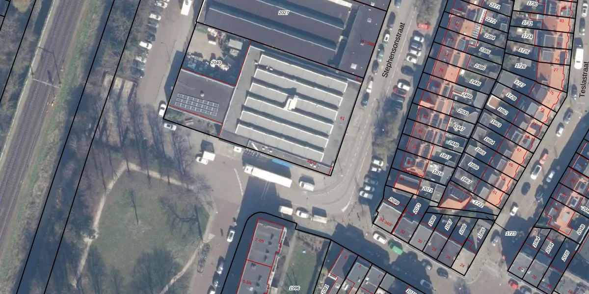 Rutherfordstraat 43 is gelegen op kadastraal perceel HLM02S2040. Deze kadastrale aanduiding is uniek en wordt gebruikt door het Kadaster om eigendomsrechten en andere zakelijke rechten vast te leggen. Het perceel maakt onderdeel uit van de kadastrale gemeente Haarlem.