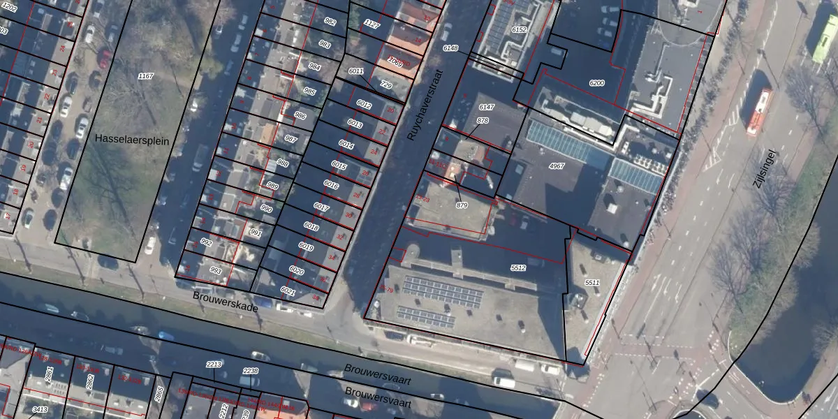 Het adres is gelegen op perceel 5512 in de sectie A en de kadastrale gemeente Haarlem. De kadastrale aanduiding is aldus HLM01-A-5512. Het perceel is met 1494 m² relatief groot. Het gemiddelde ligt in de kadastrale gemeente Haarlem op 328,33 m². Het kleinste perceel in de kadastrale gemeente is 0 m² groot. De grootste perceeloppervlakte is 13,9 ha. Op het perceel liggen in totaal 34 adressen. De laatste wijziging in het de Basisregistratie Kadaster (BRK) was op 16-08-2001.