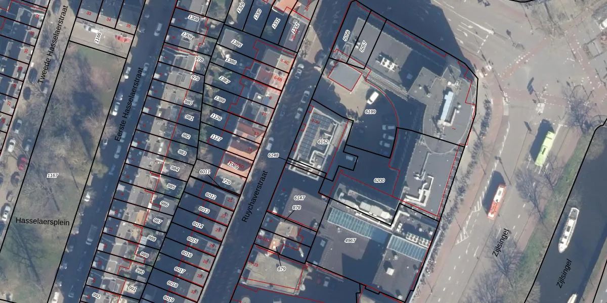 Het perceel waarop het adres ligt is HLM01-A-6152. De afkorting 'HLM01' staat voor kadastrale gemeente Haarlem. Het perceel is met 349 m² relatief groot. Het gemiddelde ligt in de kadastrale gemeente Haarlem op 328,17 m². Het grootste perceel in de kadastrale gemeente is 13,9 ha. Het kleinste perceel heeft een oppervlakte van 0 m². Er zijn 20 adressen aanwezig op het perceel. In de Basisregistratie Kadaster (BRK) werden de grenzen van het perceel geregistreerd op 02-01-2023.