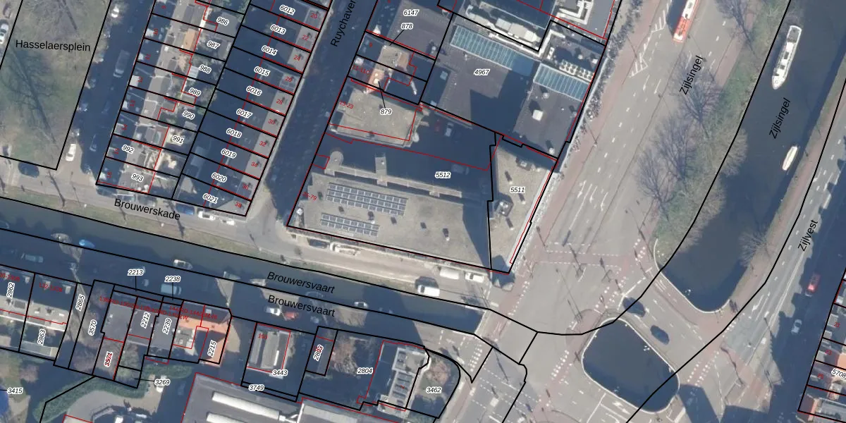 Het adres is gelegen op perceel 5512 in de sectie A en de kadastrale gemeente Haarlem. De kadastrale aanduiding is aldus HLM01-A-5512. Het perceel is met 1494 m² relatief groot. Het gemiddelde ligt in de kadastrale gemeente Haarlem op 328,33 m². Het kleinste perceel in de kadastrale gemeente is 0 m² groot. De grootste perceeloppervlakte is 13,9 ha. Op het perceel liggen in totaal 34 adressen. De laatste wijziging in het de Basisregistratie Kadaster (BRK) was op 16-08-2001.