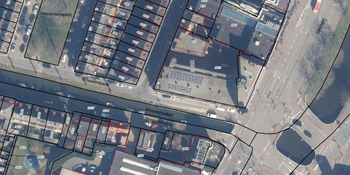 Het adres is gelegen op perceel 5512 in de sectie A en de kadastrale gemeente Haarlem. De kadastrale aanduiding is aldus HLM01-A-5512. Het perceel is met 1494 m² relatief groot. Het gemiddelde ligt in de kadastrale gemeente Haarlem op 328,33 m². Het kleinste perceel in de kadastrale gemeente is 0 m² groot. De grootste perceeloppervlakte is 13,9 ha. Op het perceel zijn 34 adressen aanwezig. De laatste wijziging in het de Basisregistratie Kadaster (BRK) was op 16-08-2001.