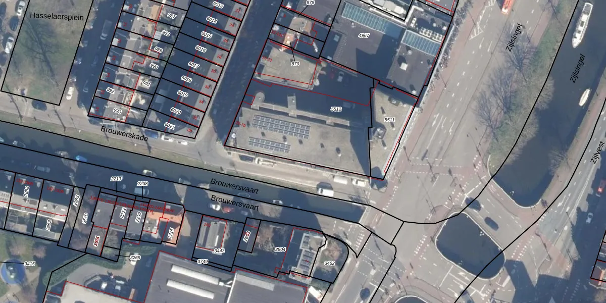 Het adres is gelegen op perceel 5512 in de sectie A en de kadastrale gemeente Haarlem. De kadastrale aanduiding is aldus HLM01-A-5512. Het perceel is met 1494 m² relatief groot. Het gemiddelde ligt in de kadastrale gemeente Haarlem op 328,33 m². Het kleinste perceel in de kadastrale gemeente is 0 m² groot. De grootste perceeloppervlakte is 13,9 ha. Op het perceel zijn 34 adressen aanwezig. De huidige grenzen van het perceel zijn digitaal in de Basisregistratie Kadaster (BRK) geregistreerd op 16-08-2001.