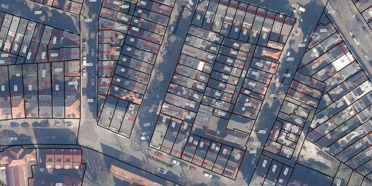 Het perceel waarop Ruysdaelstraat 13-RD staat heeft een oppervlakte van 104 m². Dit is een middelgroot perceel. De perceeloppervlakte wordt geregistreerd door het Kadaster. Gedetailleerde informatie over de maten van dit perceel kunt u vinden in het rapport Kadastrale kaart met maatvoering van Ruysdaelstraat 13-RD.