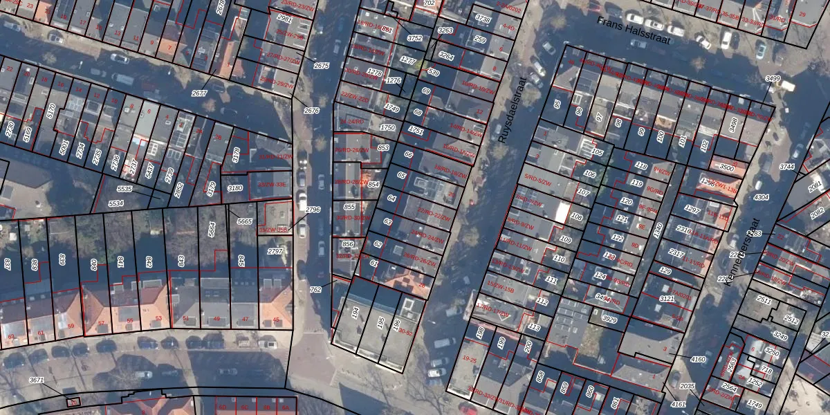 Ruysdaelstraat 22-RD is gelegen op kadastraal perceel HLM01G64. Deze kadastrale aanduiding is uniek en wordt gebruikt door het Kadaster om eigendomsrechten en andere zakelijke rechten vast te leggen. Het perceel maakt onderdeel uit van de kadastrale gemeente Haarlem.