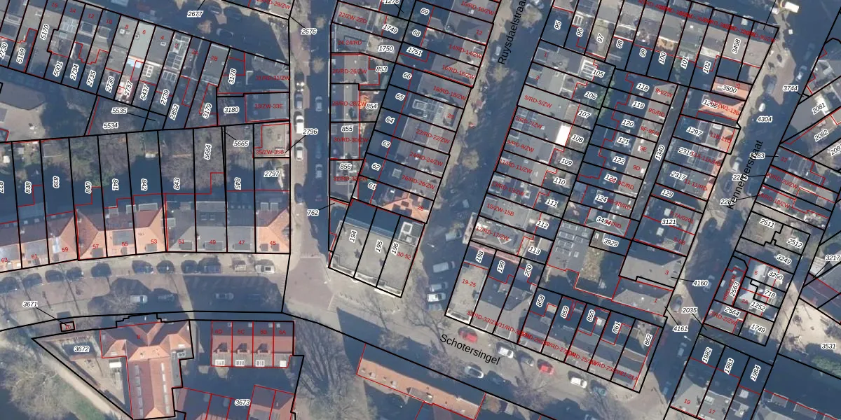 Het perceel waarop Ruysdaelstraat 28 staat heeft een oppervlakte van 108 m². Dit is een middelgroot perceel. De perceeloppervlakte wordt geregistreerd door het Kadaster. Gedetailleerde informatie over de maten van dit perceel kunt u vinden in het rapport Kadastrale kaart met maatvoering van Ruysdaelstraat 28.