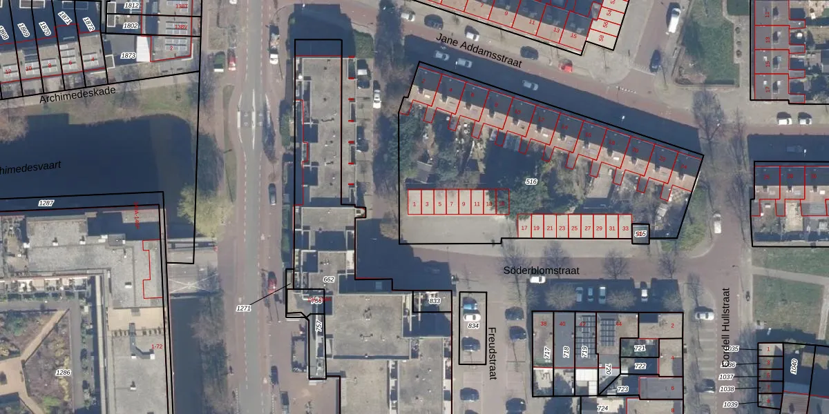 Het perceel waarop Söderblomstraat 1 staat heeft een oppervlakte van 2298 m². Dit is een zeer groot perceel. De perceeloppervlakte wordt geregistreerd door het Kadaster. Gedetailleerde informatie over de maten van dit perceel kunt u vinden in het rapport Kadastrale kaart met maatvoering van Söderblomstraat 1.