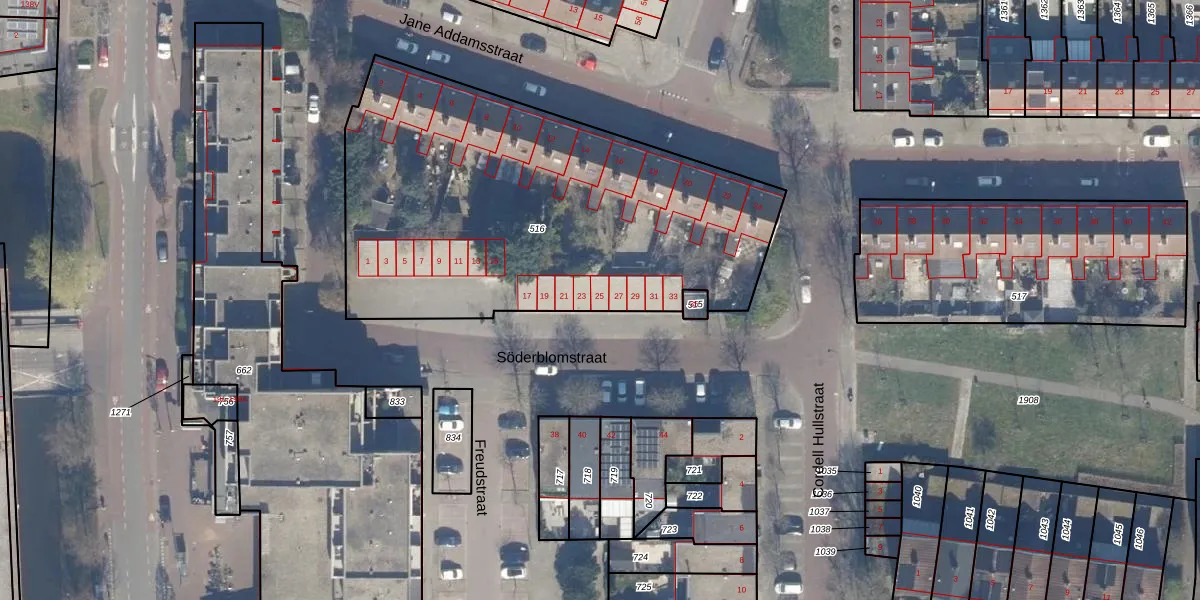 Het perceel waarop Söderblomstraat 25 staat heeft een oppervlakte van 2298 m². Dit is een zeer groot perceel. De perceeloppervlakte wordt geregistreerd door het Kadaster. Gedetailleerde informatie over de maten van dit perceel kunt u vinden in het rapport Kadastrale kaart met maatvoering van Söderblomstraat 25.