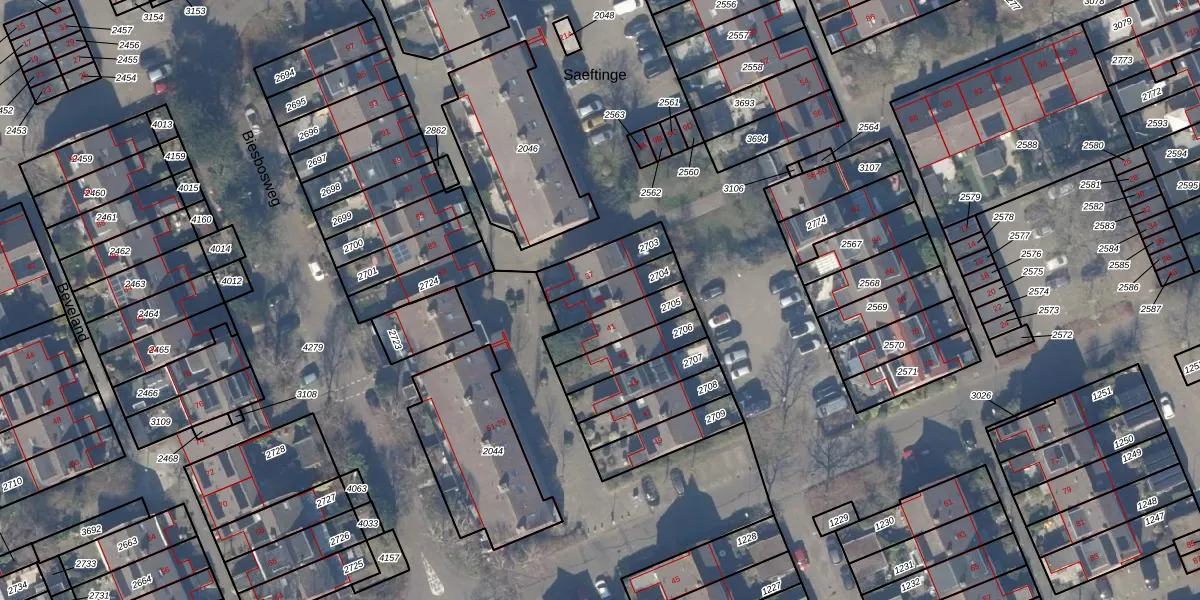 Saeftinge 39 is gelegen op kadastraal perceel HLM02Y2704. Deze kadastrale aanduiding is uniek en wordt gebruikt door het Kadaster om eigendomsrechten en andere zakelijke rechten vast te leggen. Het perceel maakt onderdeel uit van de kadastrale gemeente Haarlem.