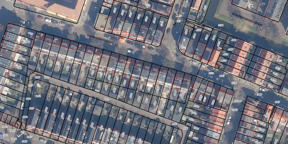 Saenredamstraat 106 is gelegen op kadastraal perceel HLM01A4076. Deze kadastrale aanduiding is uniek en wordt gebruikt door het Kadaster om eigendomsrechten en andere zakelijke rechten vast te leggen. Het perceel maakt onderdeel uit van de kadastrale gemeente Haarlem.