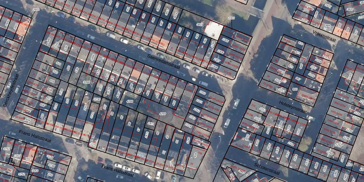 Saenredamstraat 4-B is gelegen op kadastraal perceel HLM01G455. Deze kadastrale aanduiding is uniek en wordt gebruikt door het Kadaster om eigendomsrechten en andere zakelijke rechten vast te leggen. Het perceel maakt onderdeel uit van de kadastrale gemeente Haarlem.