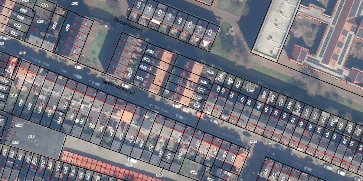 Het perceel waarop Saenredamstraat 55 staat heeft een oppervlakte van 104 m². Dit is een middelgroot perceel. De perceeloppervlakte wordt geregistreerd door het Kadaster. Gedetailleerde informatie over de maten van dit perceel kunt u vinden in het rapport Kadastrale kaart met maatvoering van Saenredamstraat 55.