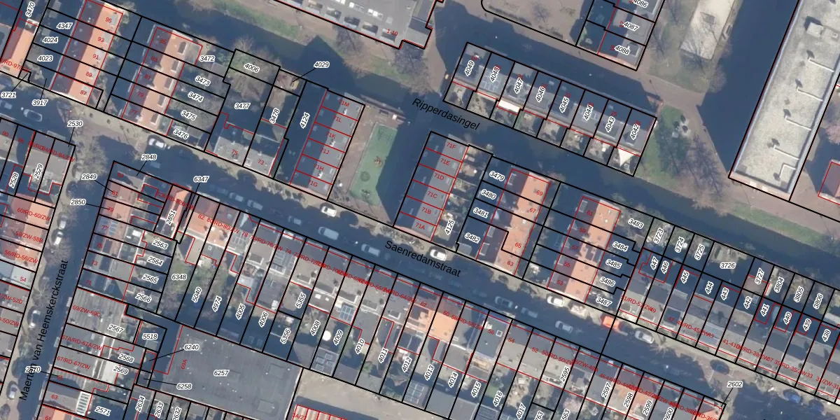 Saenredamstraat 71-B is gelegen op kadastraal perceel HLM01G4125. Deze kadastrale aanduiding is uniek en wordt gebruikt door het Kadaster om eigendomsrechten en andere zakelijke rechten vast te leggen. Het perceel maakt onderdeel uit van de kadastrale gemeente Haarlem.