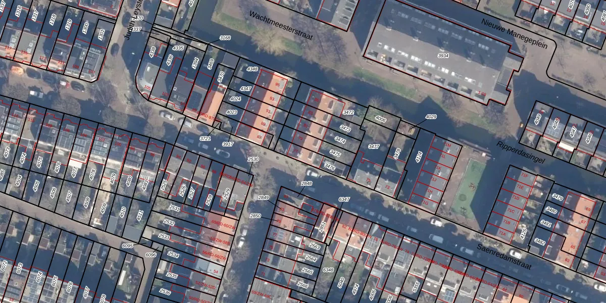 Het adres is gelegen op perceel 3476 in de sectie G en de kadastrale gemeente Haarlem. De kadastrale aanduiding is aldus HLM01-G-3476. Het perceel is kleiner dan gemiddeld in Haarlem. Het perceel is 121 m² groot, terwijl het gemiddelde ligt op 328,25 m². De grootste perceeloppervlakte in de kadastrale gemeente is 13,9 ha. De kleinste oppervlakte bedraagt 0 m². Op het perceel bevinden zich geen andere adressen. De laatste wijziging in het de Basisregistratie Kadaster (BRK) was op 30-11-2009.