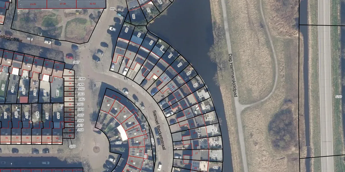 Samuel Beckettstraat 13 is gelegen op kadastraal perceel HLM02X906. Deze kadastrale aanduiding is uniek en wordt gebruikt door het Kadaster om eigendomsrechten en andere zakelijke rechten vast te leggen. Het perceel maakt onderdeel uit van de kadastrale gemeente Haarlem.