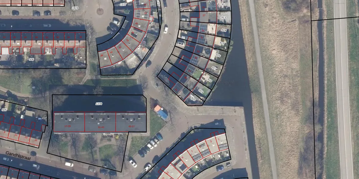 Gebruik de zoekbalk of klik op een perceel voor informatie over de adressen binnen dit perceel.