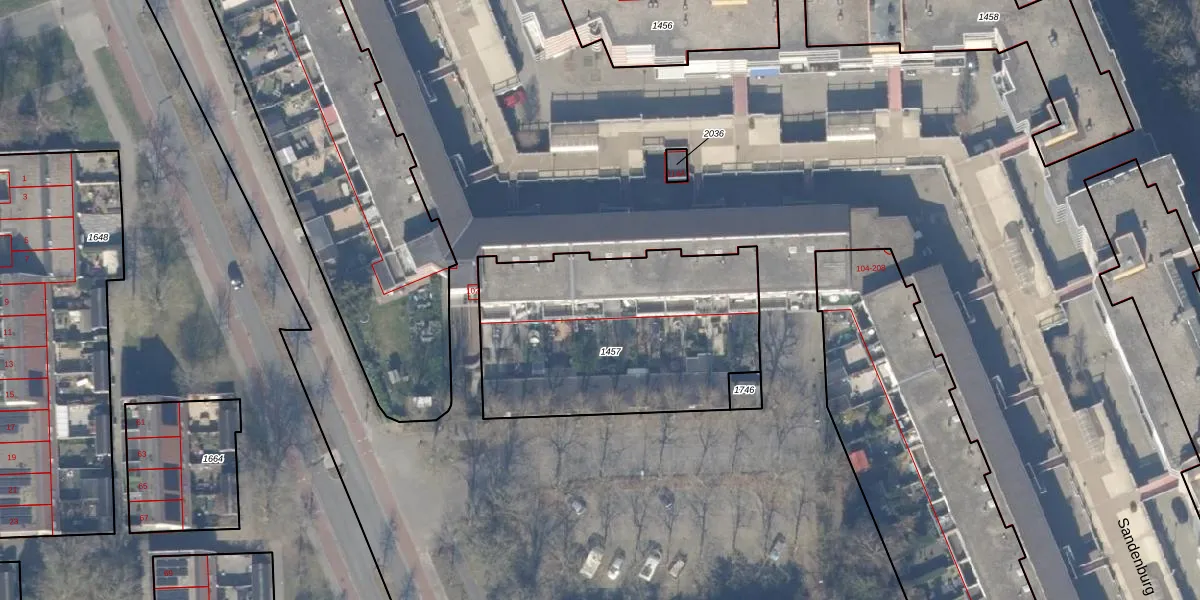 Het perceel waarop Sandenburg 120 staat heeft een oppervlakte van 1200 m². Dit is een zeer groot perceel. De perceeloppervlakte wordt geregistreerd door het Kadaster. Gedetailleerde informatie over de maten van dit perceel kunt u vinden in het rapport Kadastrale kaart met maatvoering van Sandenburg 120.