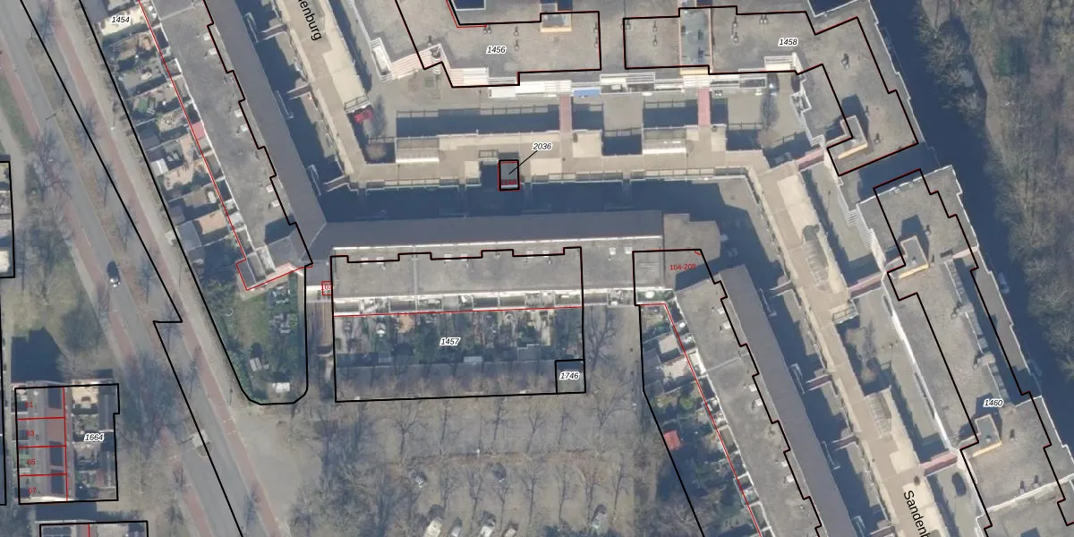 Het perceel waarop Sandenburg 126 staat heeft een oppervlakte van 1200 m². Dit is een zeer groot perceel. De perceeloppervlakte wordt geregistreerd door het Kadaster. Gedetailleerde informatie over de maten van dit perceel kunt u vinden in het rapport Kadastrale kaart met maatvoering van Sandenburg 126.