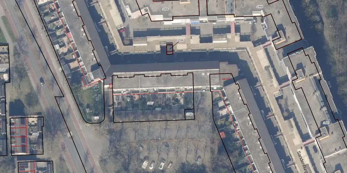 Het perceel waarop Sandenburg 130 staat heeft een oppervlakte van 1200 m². Dit is een zeer groot perceel. De perceeloppervlakte wordt geregistreerd door het Kadaster. Gedetailleerde informatie over de maten van dit perceel kunt u vinden in het rapport Kadastrale kaart met maatvoering van Sandenburg 130.
