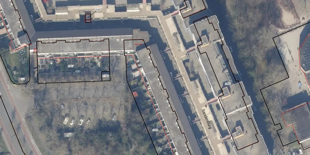 Het perceel waarop Sandenburg 154 staat heeft een oppervlakte van 2195 m². Dit is een zeer groot perceel. De perceeloppervlakte wordt geregistreerd door het Kadaster. Gedetailleerde informatie over de maten van dit perceel kunt u vinden in het rapport Kadastrale kaart met maatvoering van Sandenburg 154.