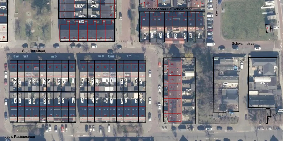 Gebruik de zoekbalk of klik op een perceel voor informatie over de adressen binnen dit perceel.
