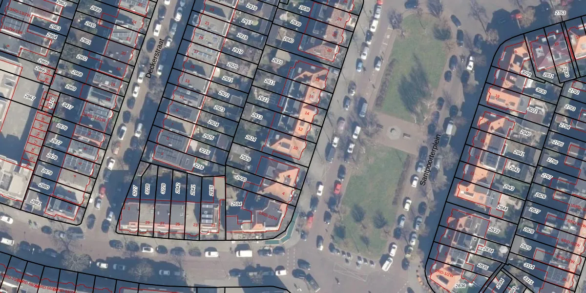 Gebruik de zoekbalk of klik op een perceel voor informatie over de adressen binnen dit perceel.