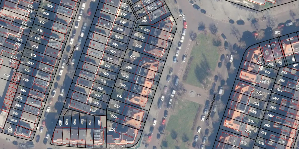 Gebruik de zoekbalk of klik op een perceel voor informatie over de adressen binnen dit perceel.
