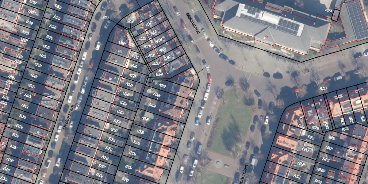 Gebruik de zoekbalk of klik op een perceel voor informatie over de adressen binnen dit perceel.