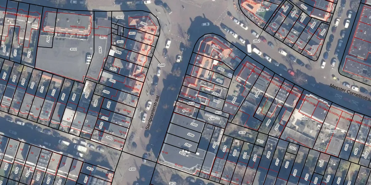 Santpoorterstraat 55-ZW is gelegen op kadastraal perceel HLM01G2607. Deze kadastrale aanduiding is uniek en wordt gebruikt door het Kadaster om eigendomsrechten en andere zakelijke rechten vast te leggen. Het perceel maakt onderdeel uit van de kadastrale gemeente Haarlem.