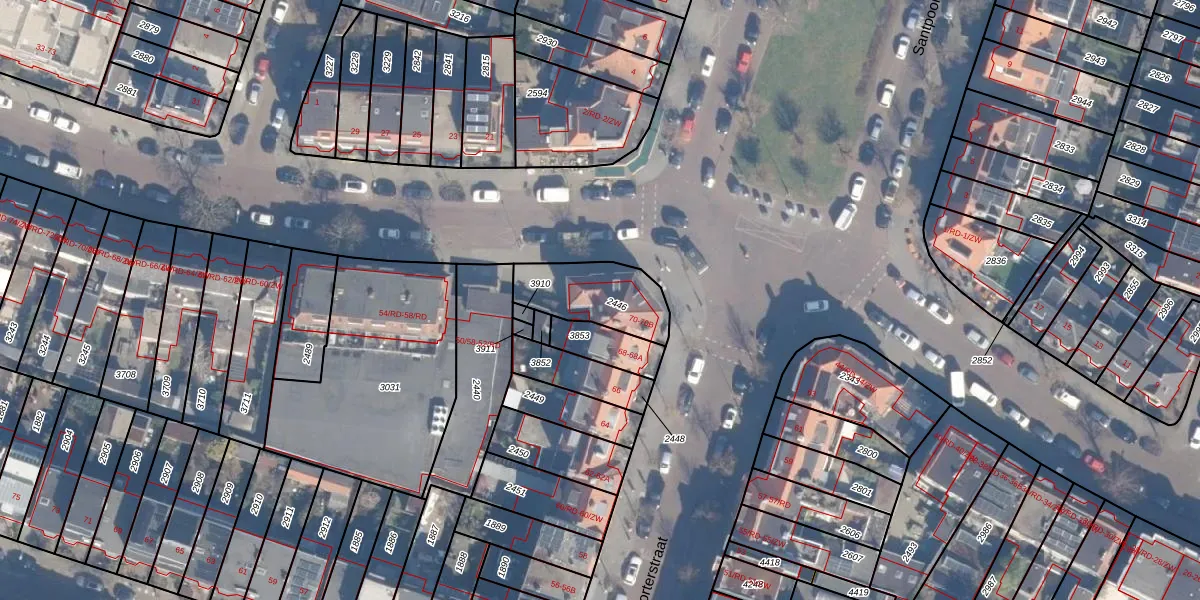 Santpoorterstraat 70-B is gelegen op kadastraal perceel HLM01G2446. Deze kadastrale aanduiding is uniek en wordt gebruikt door het Kadaster om eigendomsrechten en andere zakelijke rechten vast te leggen. Het perceel maakt onderdeel uit van de kadastrale gemeente Haarlem.