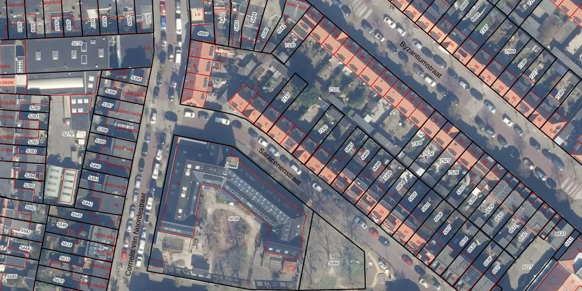 Het perceel waarop Saracenenstraat 9 staat heeft een oppervlakte van 2195 m². Dit is een zeer groot perceel. De perceeloppervlakte wordt geregistreerd door het Kadaster. Gedetailleerde informatie over de maten van dit perceel kunt u vinden in het rapport Kadastrale kaart met maatvoering van Saracenenstraat 9.