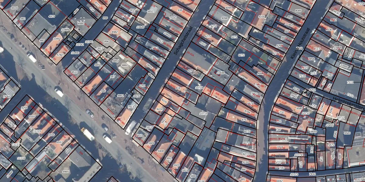 Schagchelstraat 39-RD is gelegen op kadastraal perceel HLM01D818. Deze kadastrale aanduiding is uniek en wordt gebruikt door het Kadaster om eigendomsrechten en andere zakelijke rechten vast te leggen. Het perceel maakt onderdeel uit van de kadastrale gemeente Haarlem.