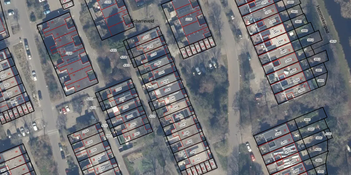 Het perceel waarop Scharreveld 59 staat heeft een oppervlakte van 108 m². Dit is een middelgroot perceel. De perceeloppervlakte wordt geregistreerd door het Kadaster. Gedetailleerde informatie over de maten van dit perceel kunt u vinden in het rapport Kadastrale kaart met maatvoering van Scharreveld 59.