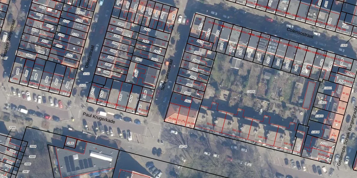Gebruik de zoekbalk of klik op een perceel voor informatie over de adressen binnen dit perceel.