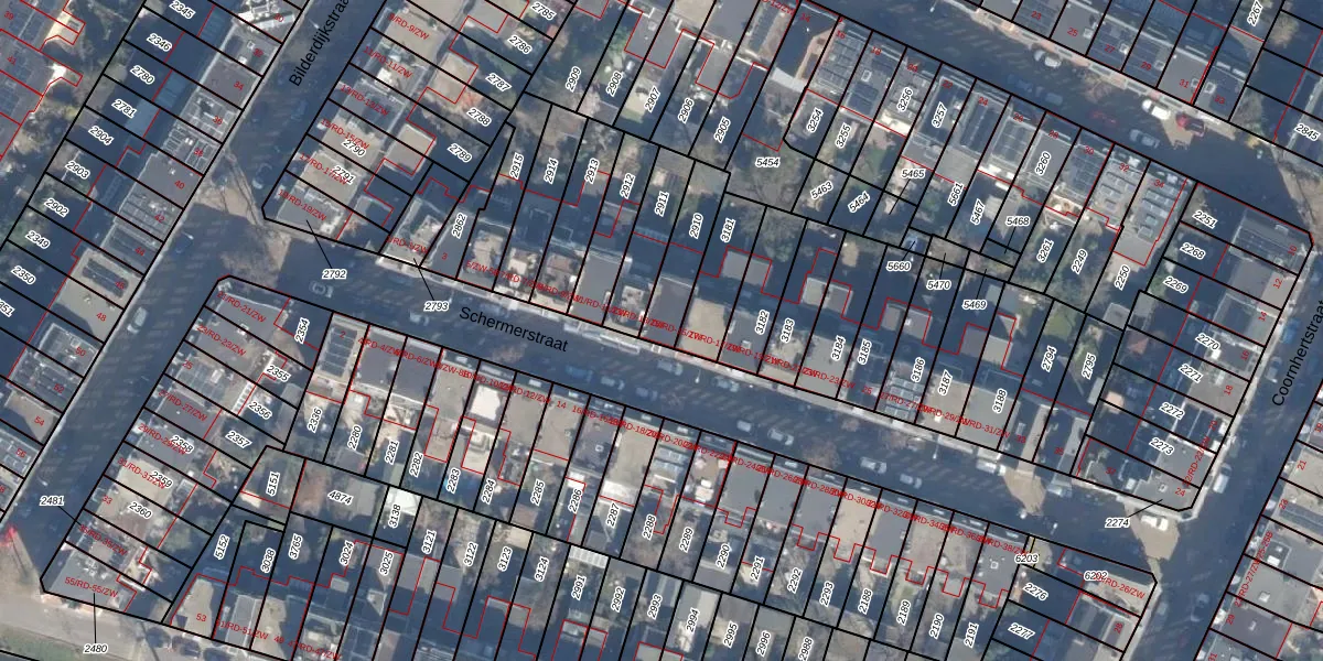 Schermerstraat 15-ZW is gelegen op kadastraal perceel HLM01A2910. Deze kadastrale aanduiding is uniek en wordt gebruikt door het Kadaster om eigendomsrechten en andere zakelijke rechten vast te leggen. Het perceel maakt onderdeel uit van de kadastrale gemeente Haarlem.