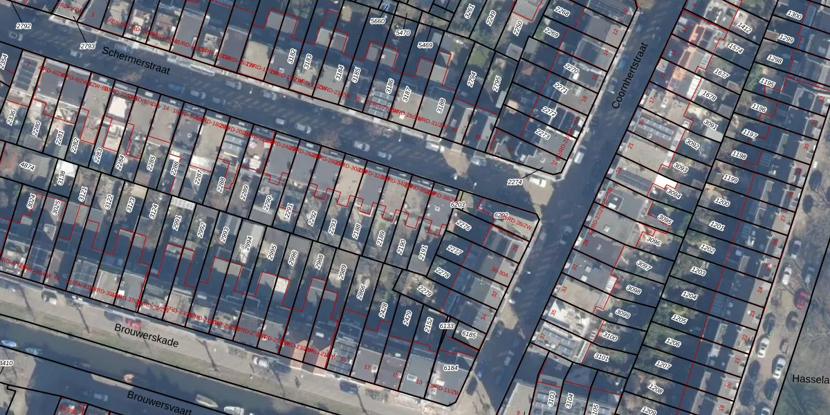 Schermerstraat 36-RD is gelegen op kadastraal perceel HLM01A2190. Deze kadastrale aanduiding is uniek en wordt gebruikt door het Kadaster om eigendomsrechten en andere zakelijke rechten vast te leggen. Het perceel maakt onderdeel uit van de kadastrale gemeente Haarlem.