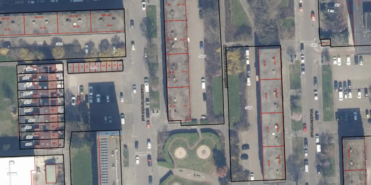 Het adres is gelegen op perceel 1526 in de sectie Y en de kadastrale gemeente Haarlem. De kadastrale aanduiding is aldus HLM02-Y-1526. De oppervlakte van het perceel is 2241 m². Dat is groter dan gemiddeld in Haarlem, waar de gemiddelde perceeloppervlakte op 1124,3 m² ligt. De grootste perceeloppervlakte in de kadastrale gemeente is 46,4 ha. De kleinste oppervlakte bedraagt 0 m². Op het perceel zijn 40 adressen aanwezig. In de Basisregistratie Kadaster (BRK) werden de grenzen van het perceel geregistreerd op 06-02-2002.