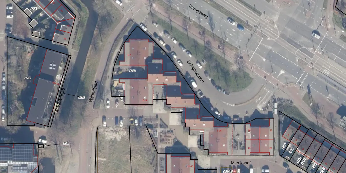 Het perceel waarop Schipholpoort 17 staat heeft een oppervlakte van 2450 m². Dit is een zeer groot perceel. De perceeloppervlakte wordt geregistreerd door het Kadaster. Gedetailleerde informatie over de maten van dit perceel kunt u vinden in het rapport Kadastrale kaart met maatvoering van Schipholpoort 17.
